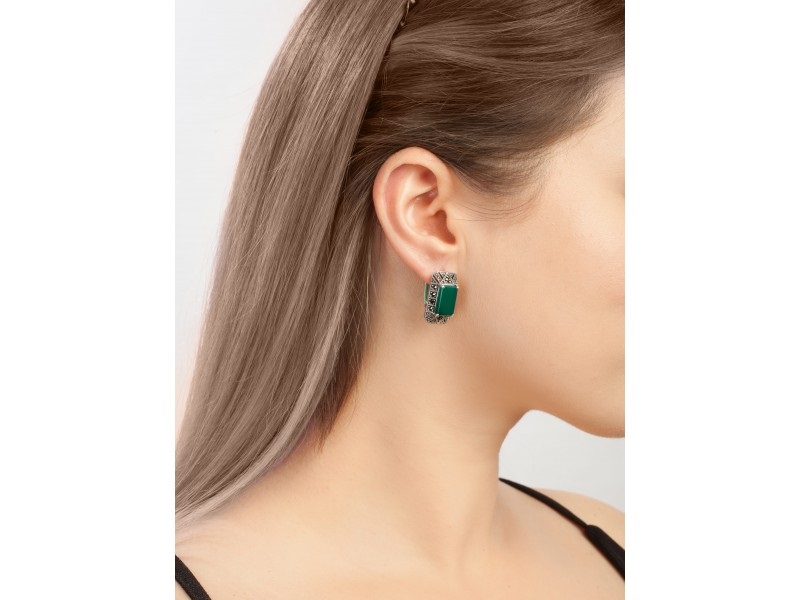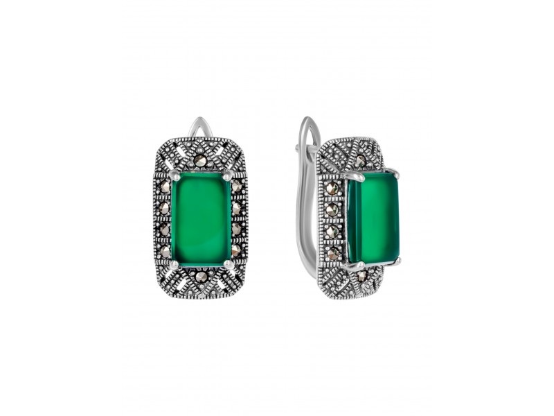 Серьги, марказит, хризопраз
