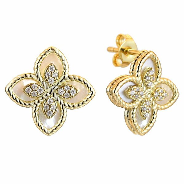 Серьги, перламутр, фианит