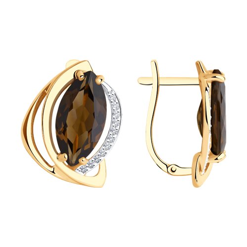 Серьги, раух топаз, фианит