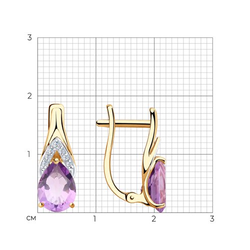Серьги, аметист, фианит