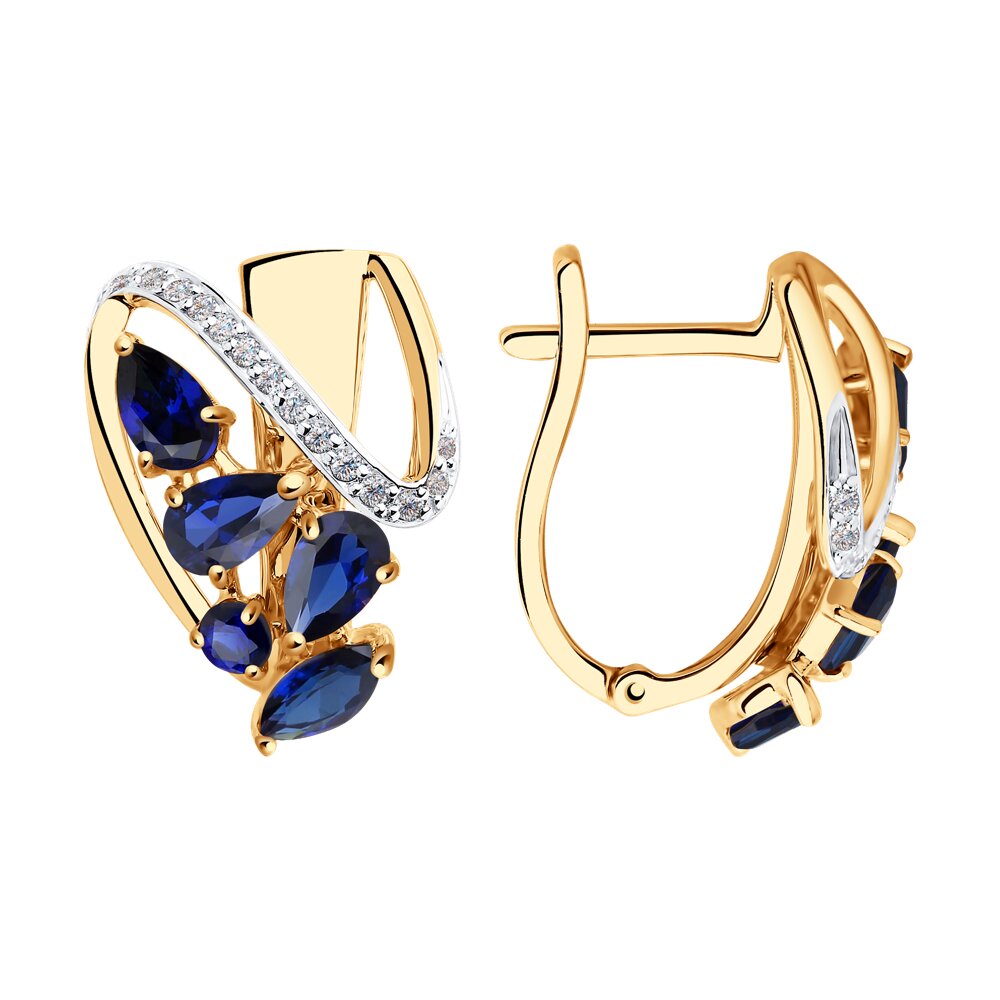 Серьги, корунд сапфир синт., фианит