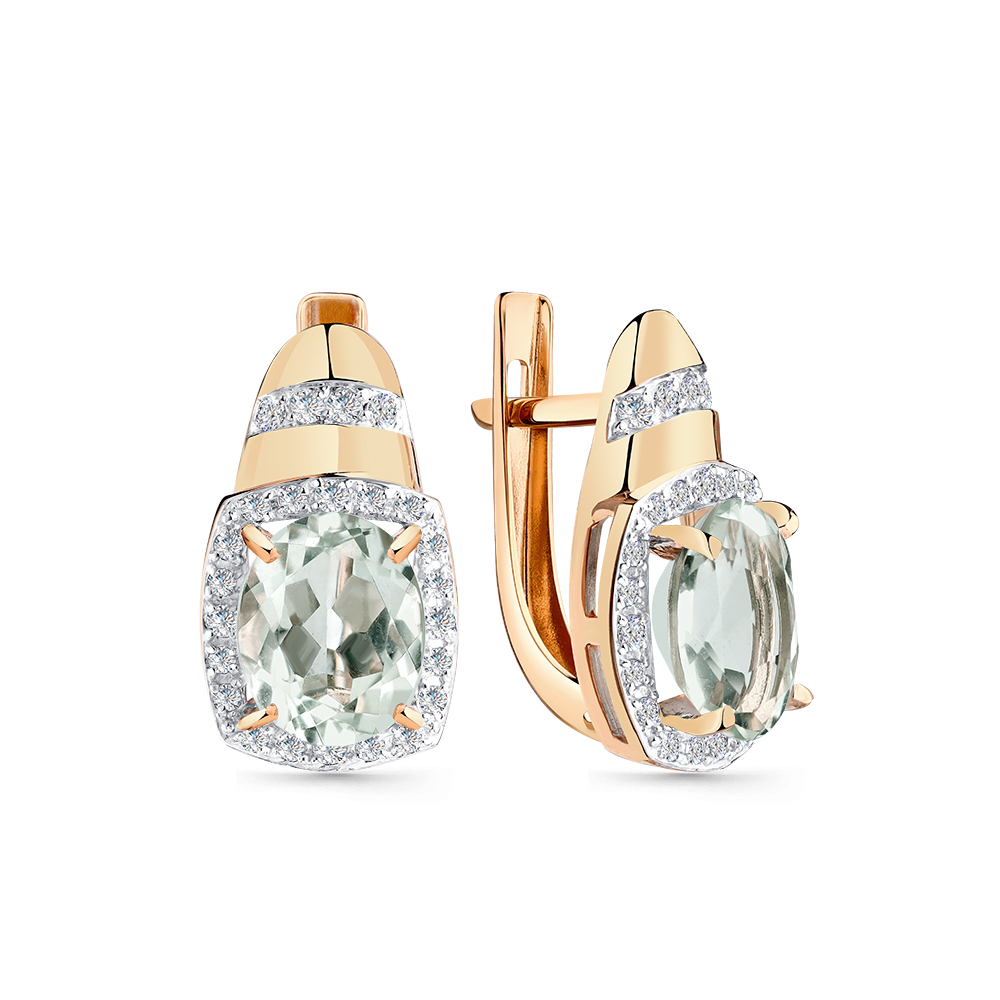 Серьги, празиолит, фианит