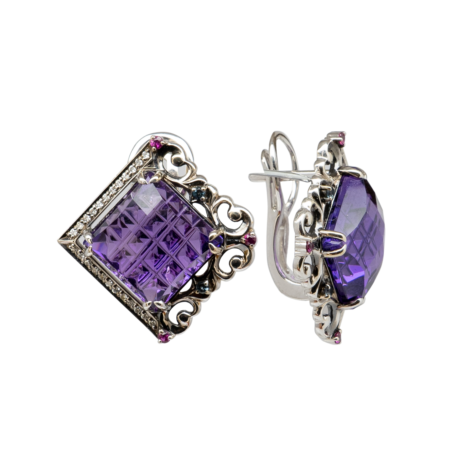 Серьги, аметист, бриллиант, родолит, сапфир, ситалл, топаз лондон