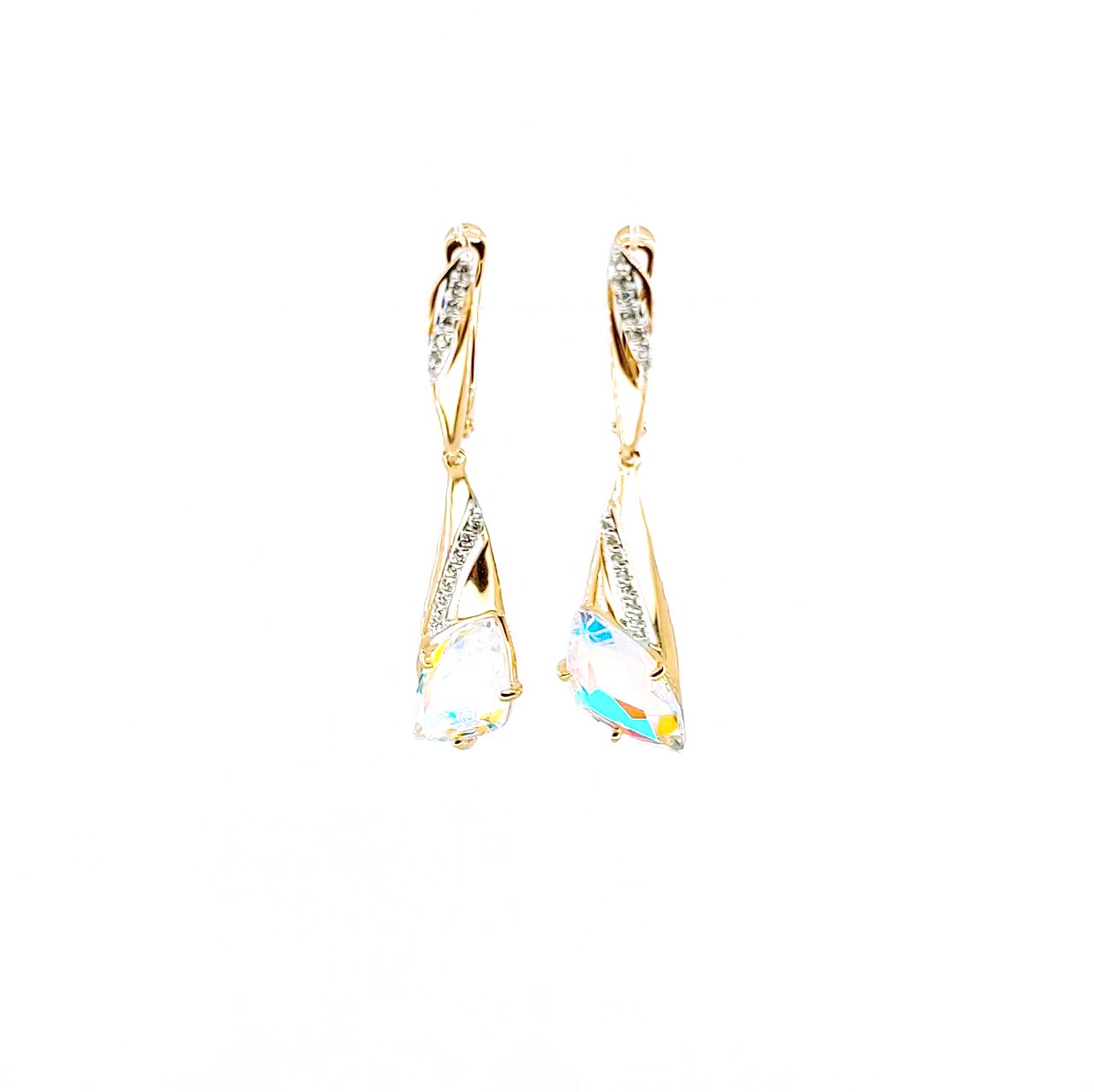Серьги, кварц радужный, фианит