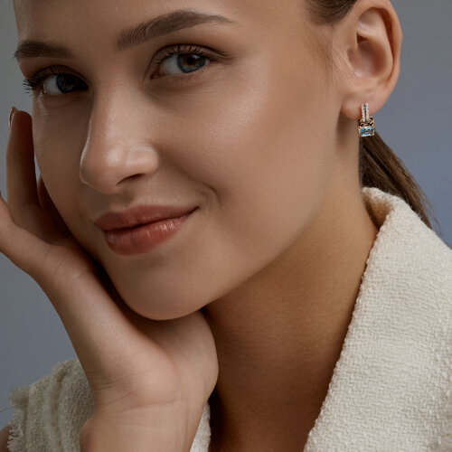 Серьги, топаз, фианит