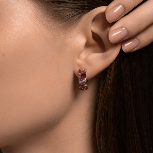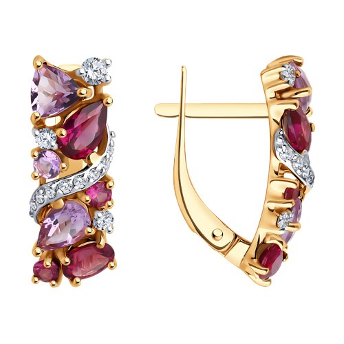 Серьги, аметист, родолит, фианит