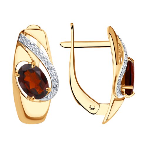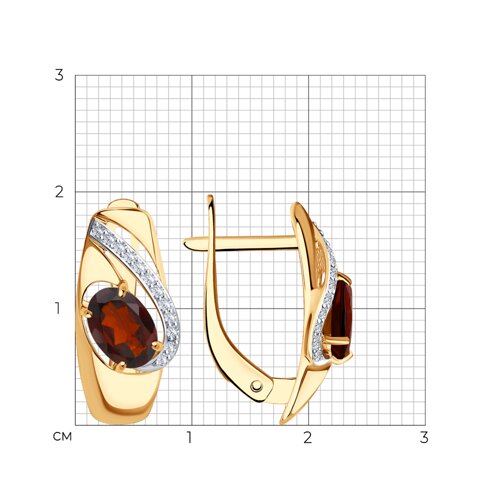 Серьги, гранат, фианит