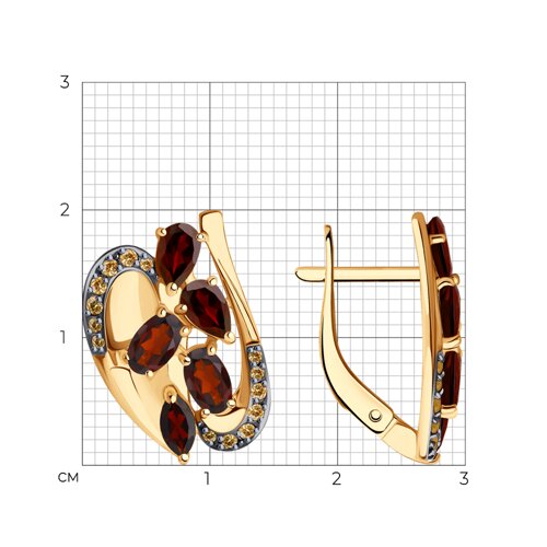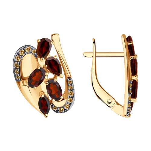 Серьги, гранат, фианит