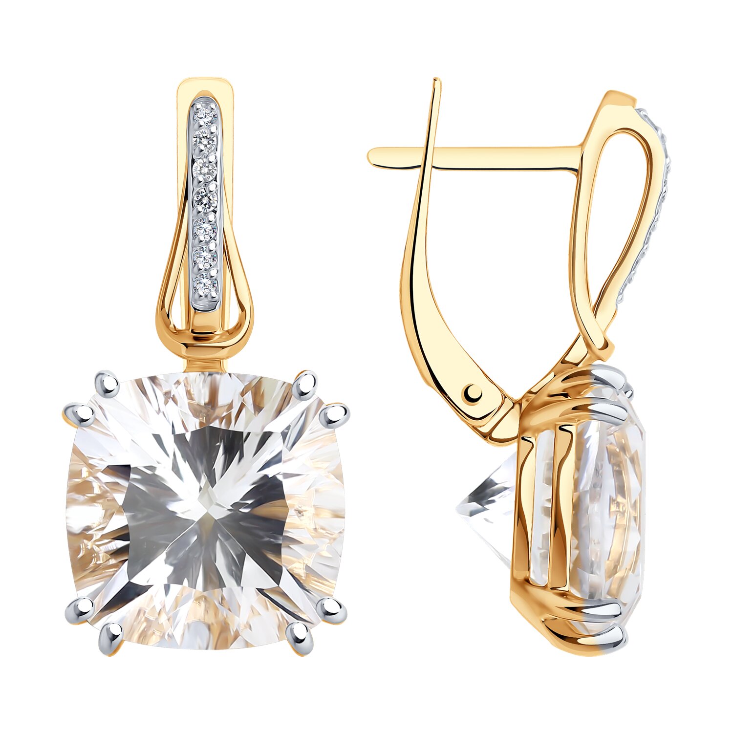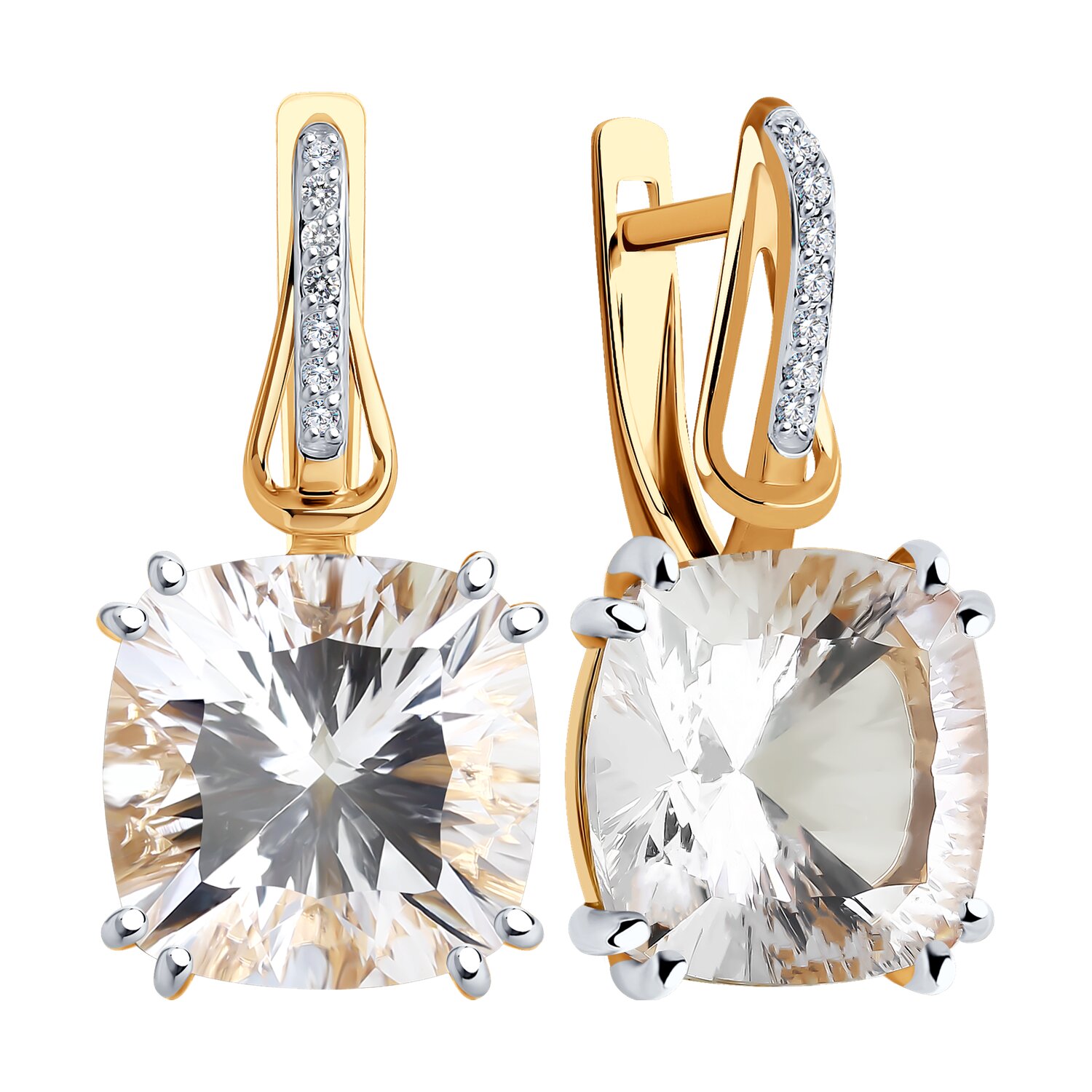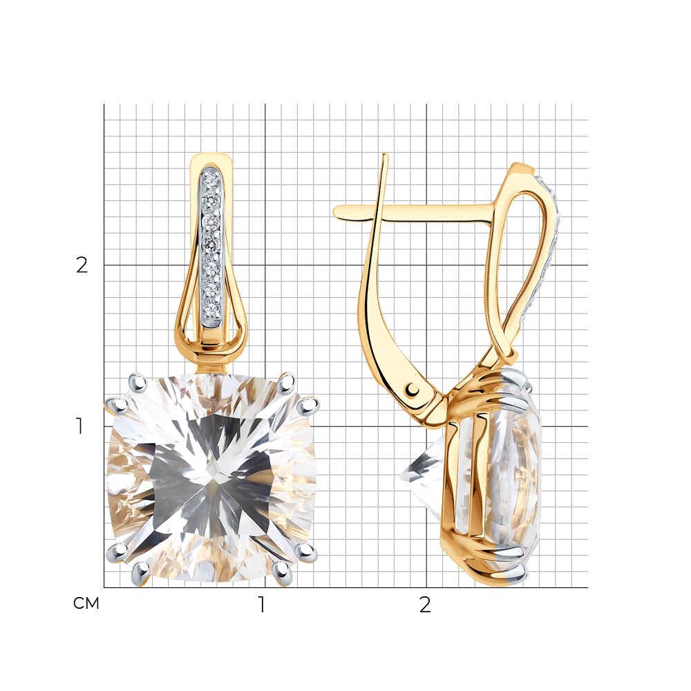 Серьги, горный хрусталь, фианит