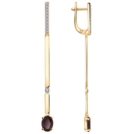 Серьги, гранат, фианит
