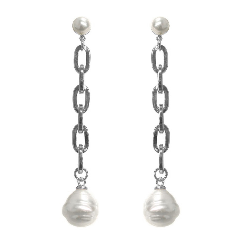Сплав Брасс, гальваническое покрытие родированием, жемчуг майорика. Застёжка: гвоздик.