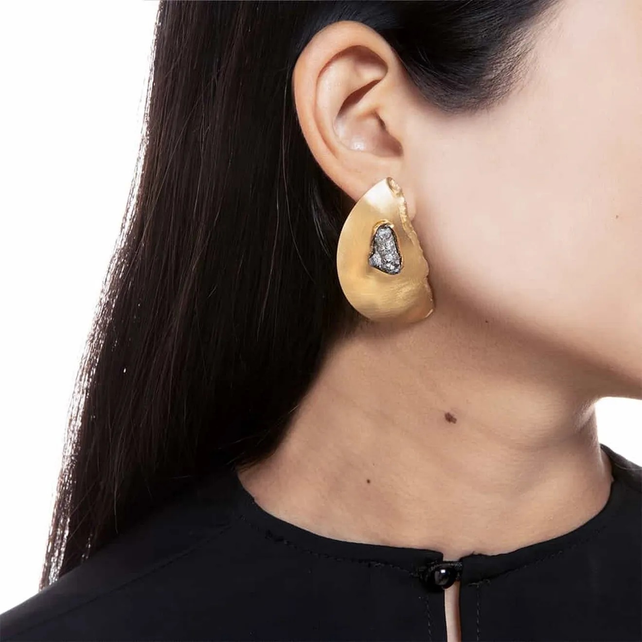 Друза агата в центре каждой серьги — это природный минерал, который славится своей текстурой и игрой цвета. Его натуральные оттенки могут варьироваться от нежно-розового до глубокого бордового, что делает каждую пару уникальной: вы не найдете двух одинаковых сережек. Друза красиво переливается на свету, создавая эффектный блеск.