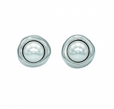 Посеребренные металлические серьги с искусственной жемчужиной SWAROVSKI® ELEMENTS неправильной формы. В основе элегантного классического дизайна - округлые и немного неправильные формы. Серьги отражают творческий и бунтарский дух бренда UNOde50. Уникальное украшение произведено в Испании по традиционным технологиям. Полностью ручная работа.