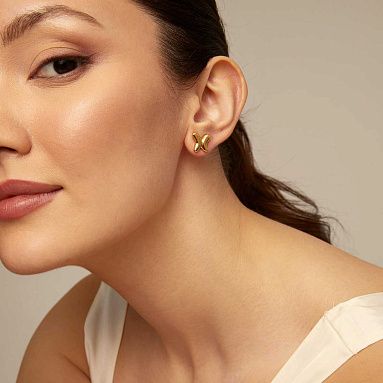 Эксклюзивные серьги BUTTERFLY EFFECT с золотом из коллекции FREE —аксессуар с креативным дизайном, способный продемонстрировать ваш утонченный вкус. Выполненные в виде колец, украшенных центральным элементов, стилизованным под бабочку, серьги сияют, словно освещенные солнечными лучами — так ярко переливается позолота уникального сплава ZAMAK. Украшение ручной работы изготовлено в Испании с помощью специальных ремесленных техник, которые привносят особенный шарм.