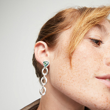 Посеребрённые серьги Ser Camaleonica — как утренние росинки на лепестках волшебного сада, впитавшие дыхание леса и первые лучи восходящего солнца. Зелёные кристаллы-хамелеоны мерцают живыми оттенками — от прохладной мяты до глубокого изумруда, словно в них сплелись тайны природы, нежность воспоминаний и трепет несказанных чувств. Они ловят свет, как душа ловит музыку момента, и откликаются на каждое движение — едва заметным переливом, крошечной вспышкой волшебства. Эти серьги — для тех, кто живёт сердцем, кто слышит тишину между словами и видит сказку в повседневности.