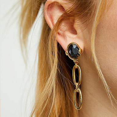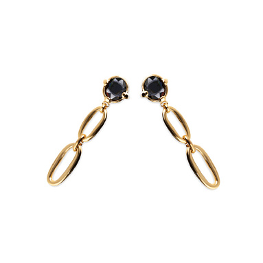 Серьги-цепи Ser Deslumbrante с черным кристаллом станут ярким акцентом вашего образа. Длинные цепочки из позолоченного металла красиво обрамляют лицо, создавая эффектный, но изящный стиль. Черный кристалл придает серьгам глубину и утонченность, делая их идеальными для вечерних и повседневных образов.