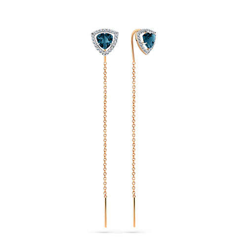 Серьги продевки, топаз, фианит