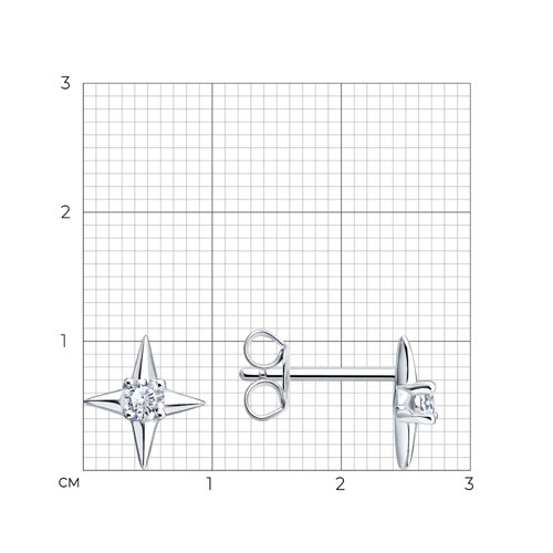 Серьги пусеты, фианит