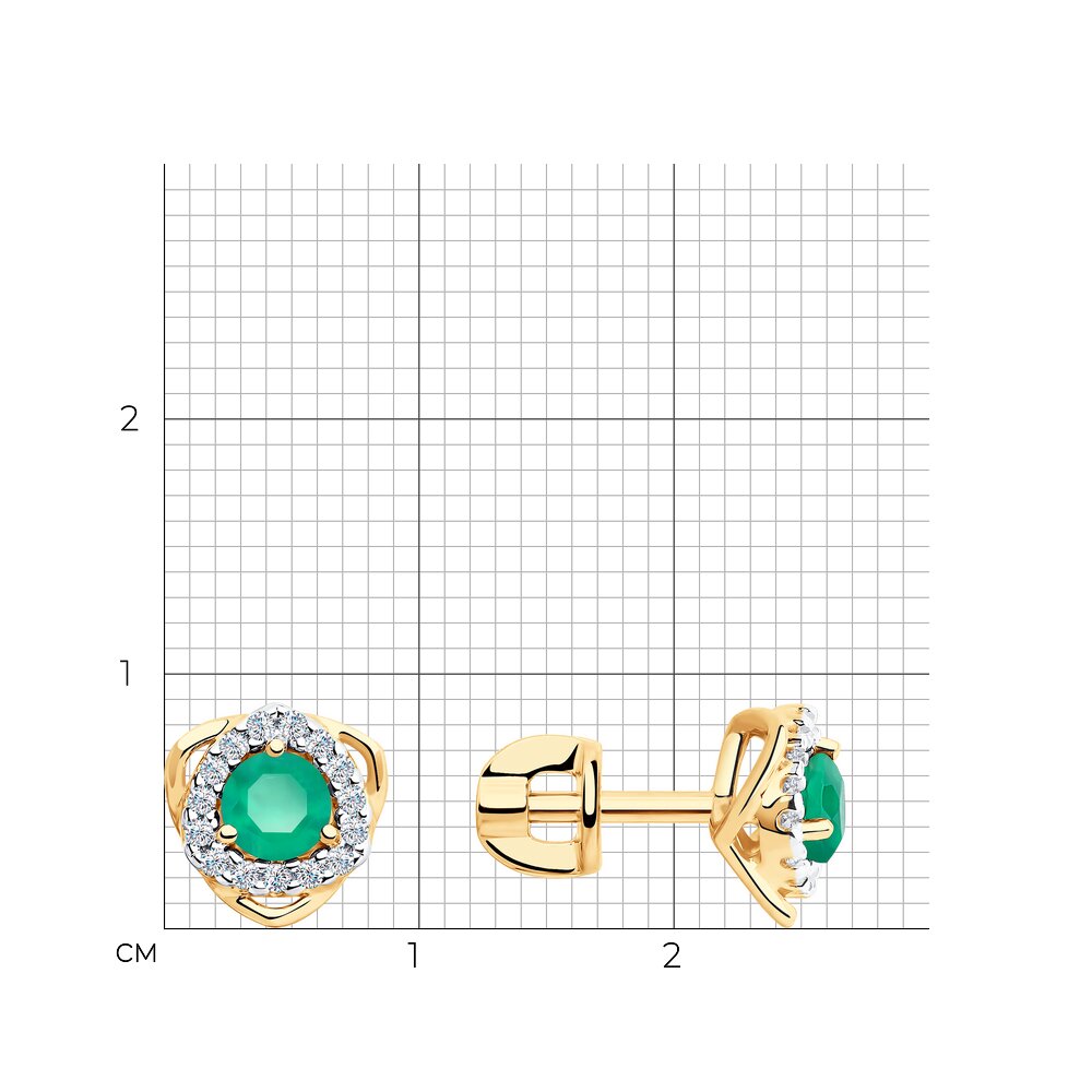 Серьги пусеты, агат, фианит