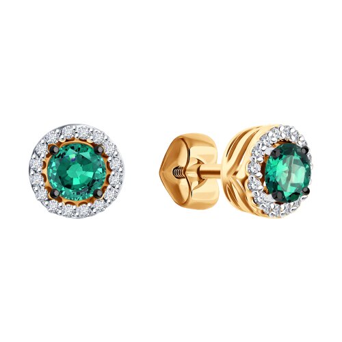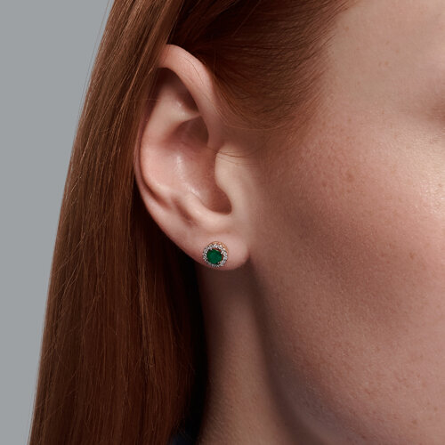Серьги пусеты, бриллиант, изумруд