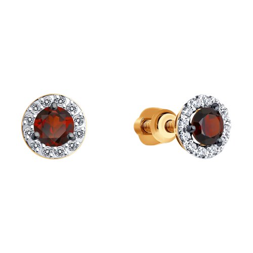 Серьги пусеты, гранат, фианит