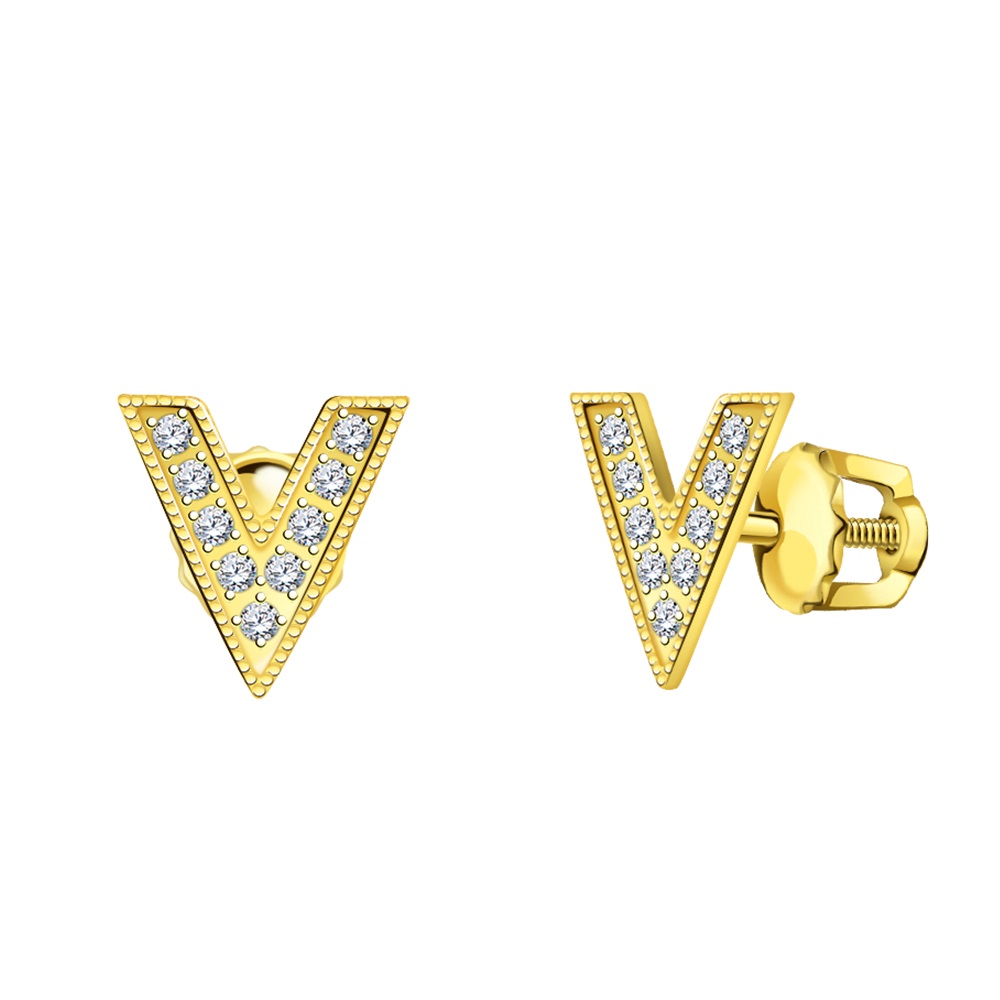 Серьги пусеты, фианит
